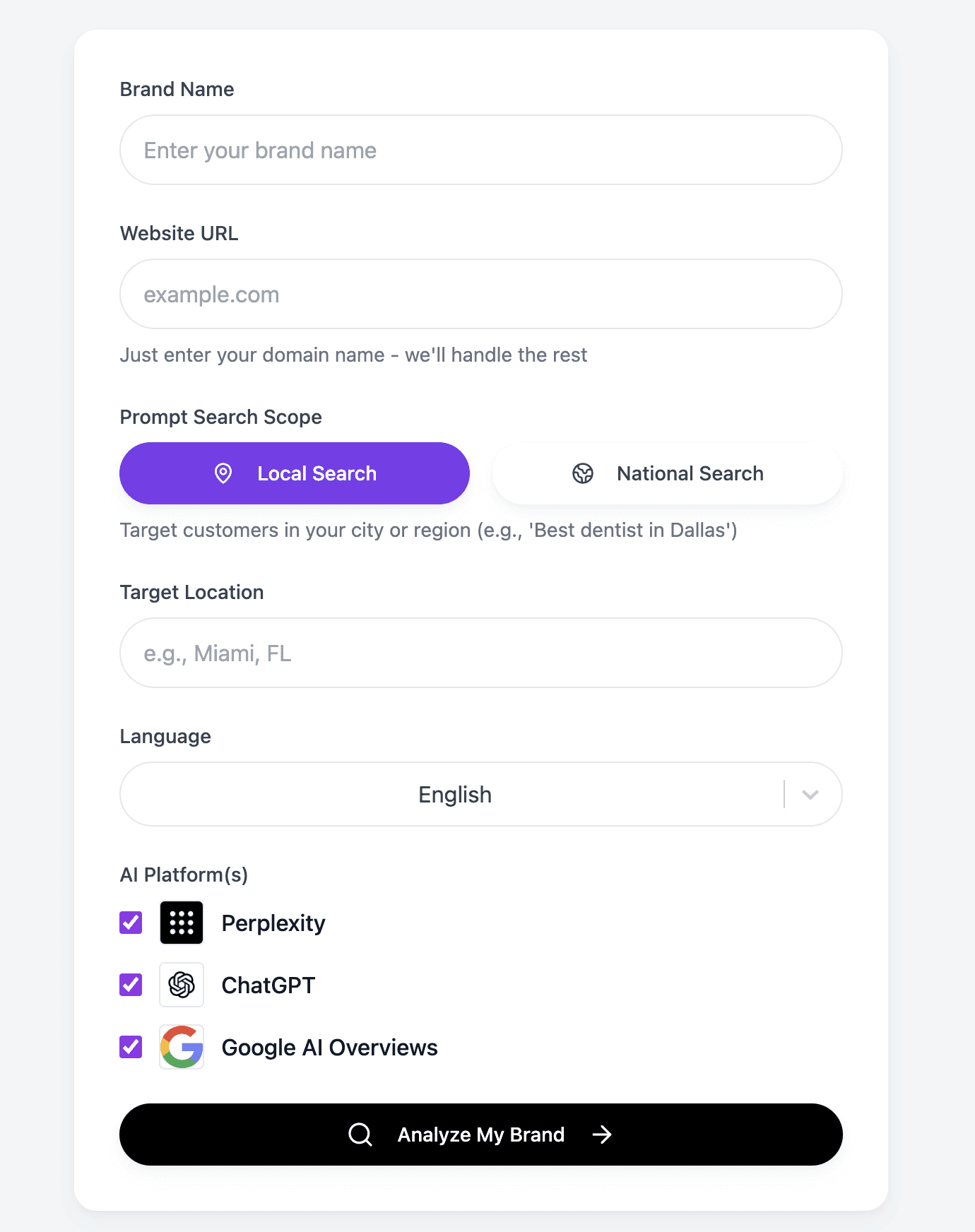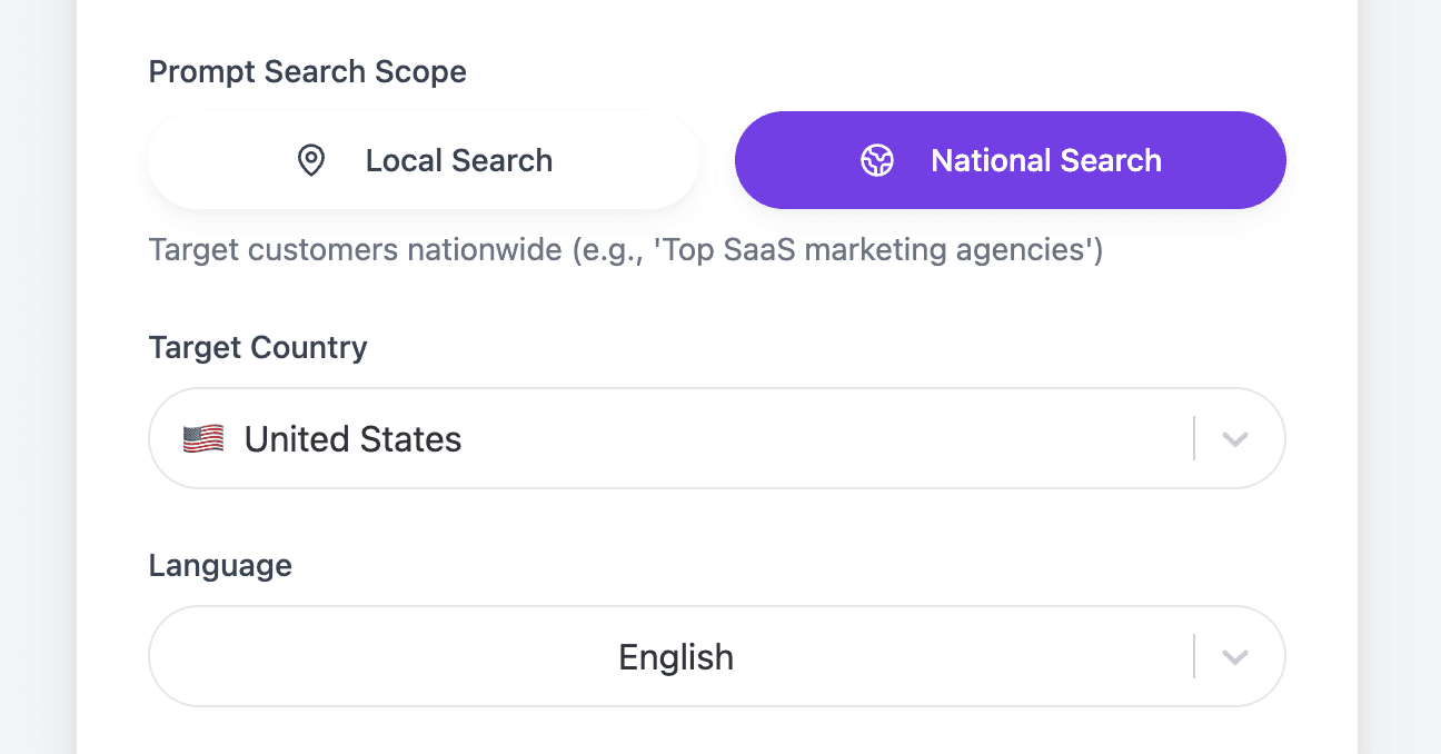 More prompts mean more data and a broader visibility picture. Smaller prompt sets help you quickly validate or spot-check specific strategies.