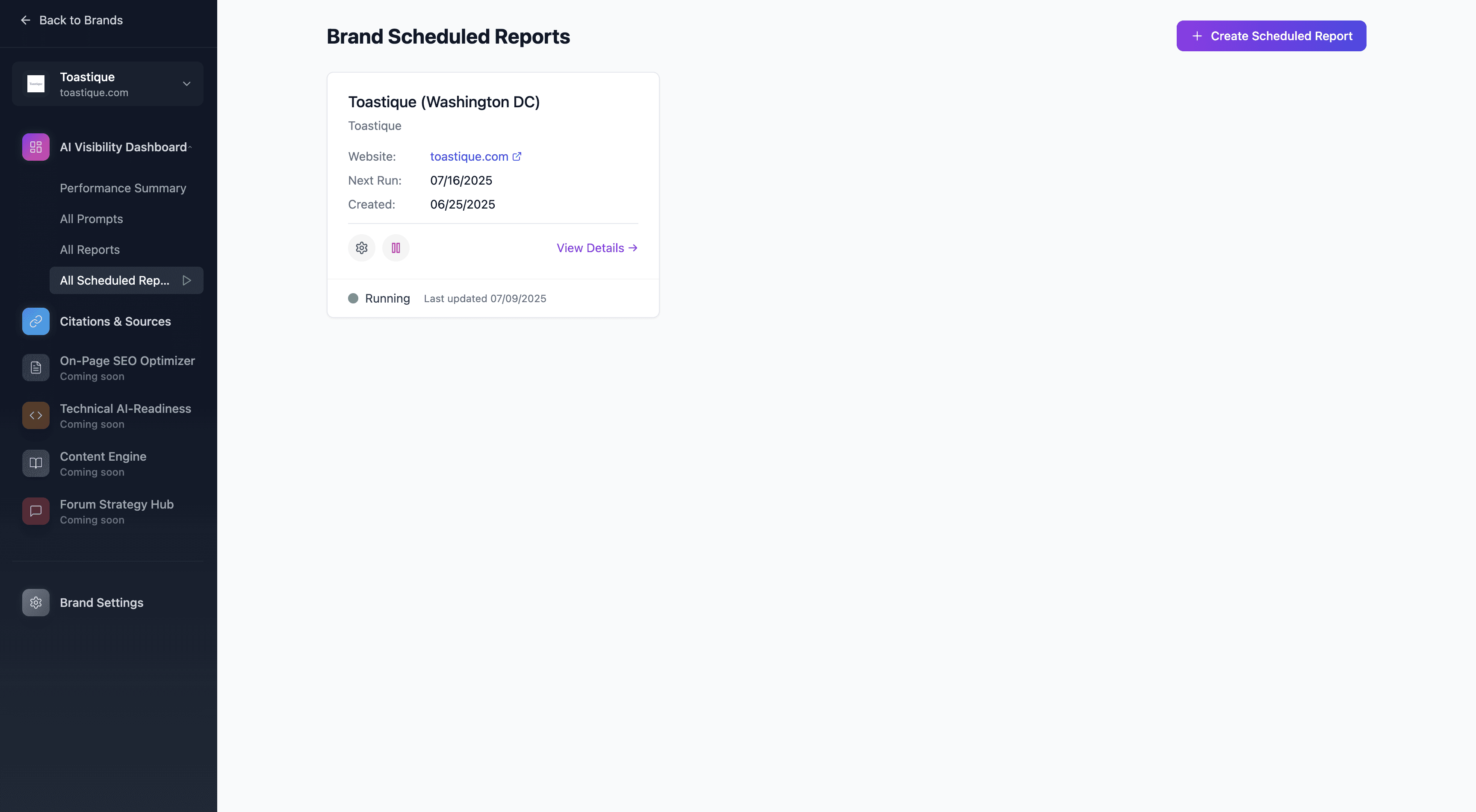 Whether you're running a single report or managing dozens of scheduled reports over time, the Brand Dashboard is designed to help you stay organized, focused, and data-driven.
